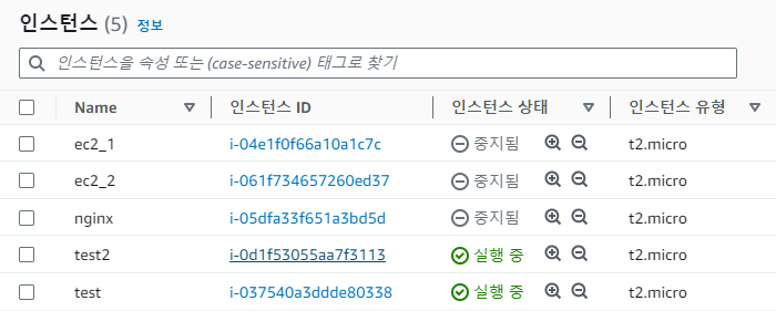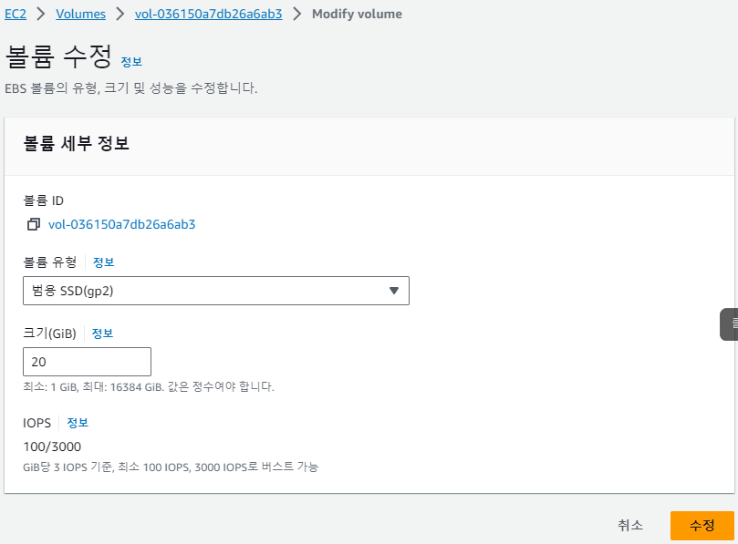 용량 증설 할 인스턴스 ID 클릭 (test2)
