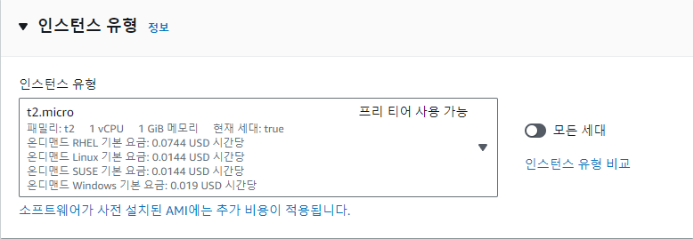 인스턴스 유형 t2.micro