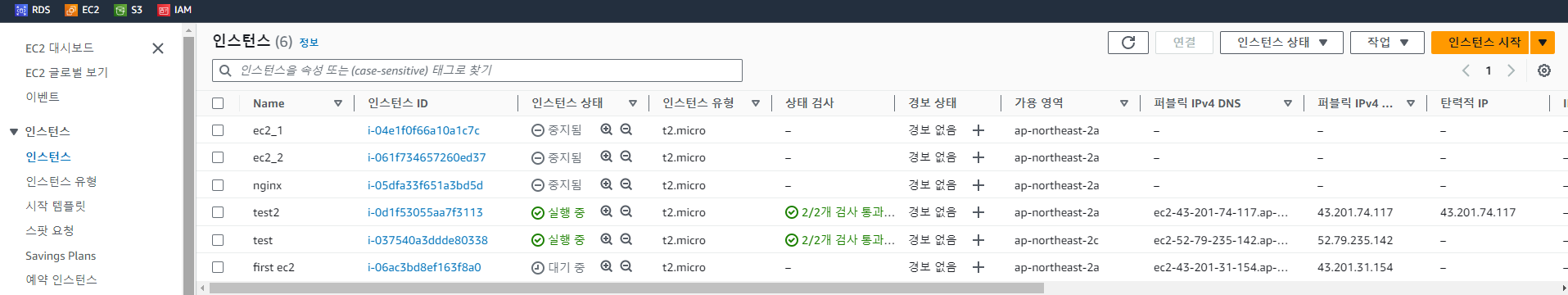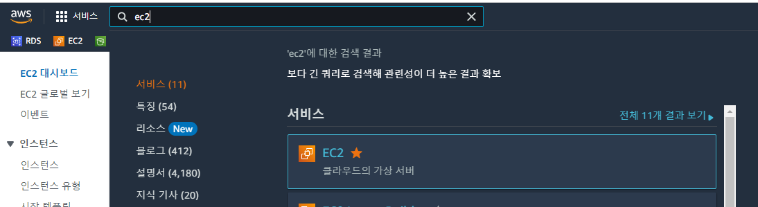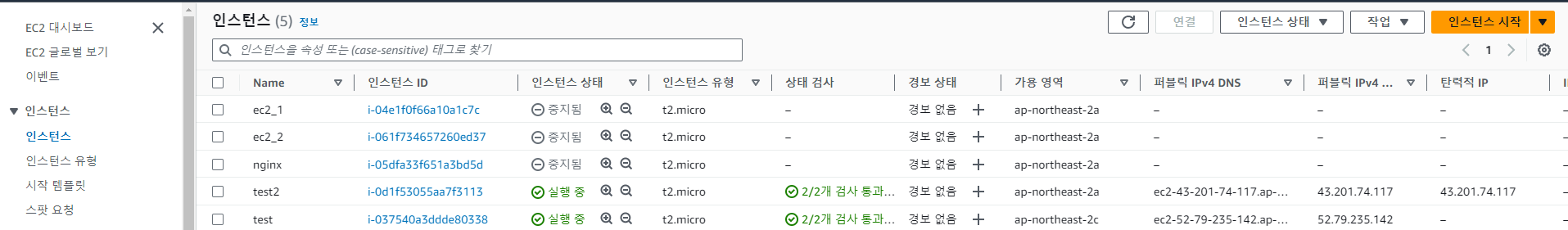 EC2 검색 > 인스턴스