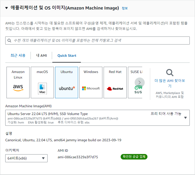 OS 선택 (여기선 ubuntu Server 22.04 LTS )