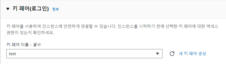 키 페어 선택