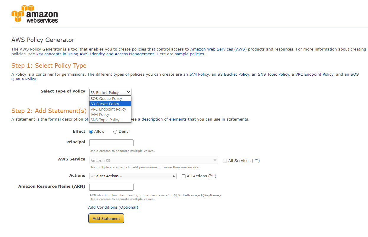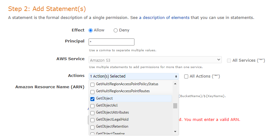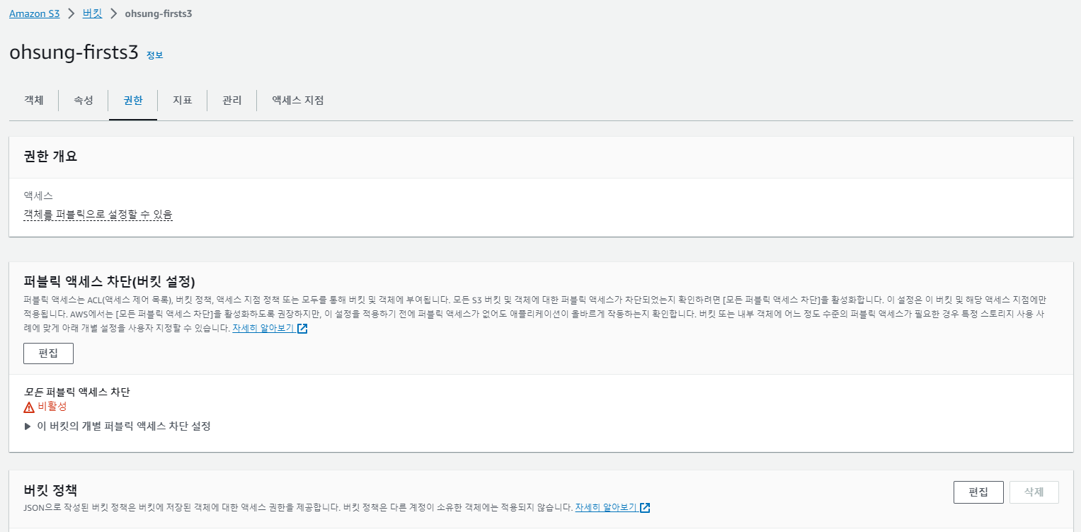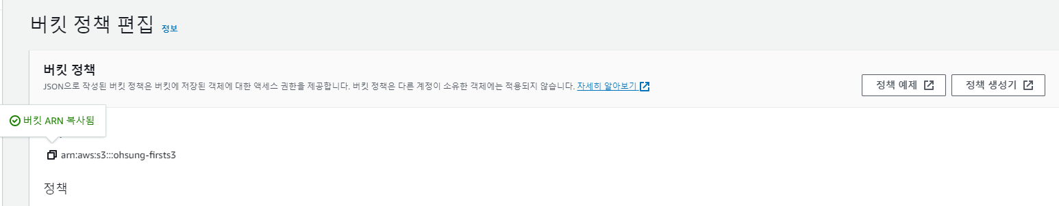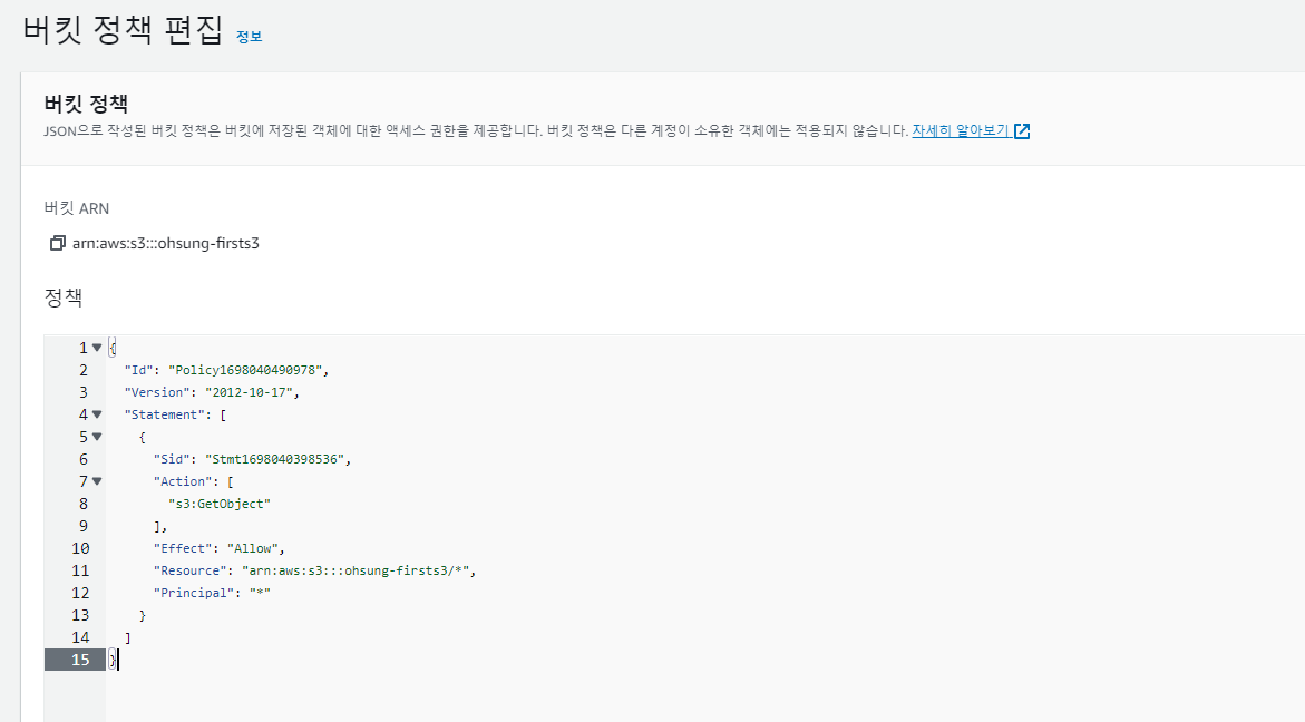 버킷 정책 편집으로 돌아와 붙여넣기 > 변경사항 저장