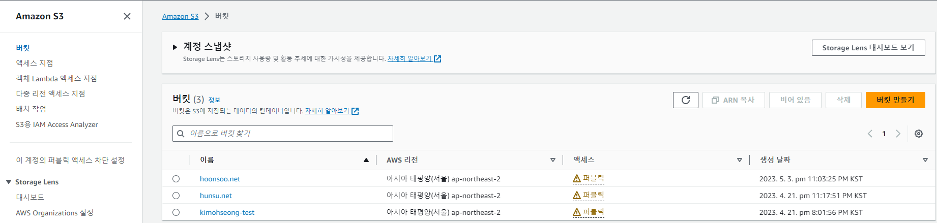 프론트엔드 배포, 데이터 아카이브 용도의 S3 버킷 생성입니다.
