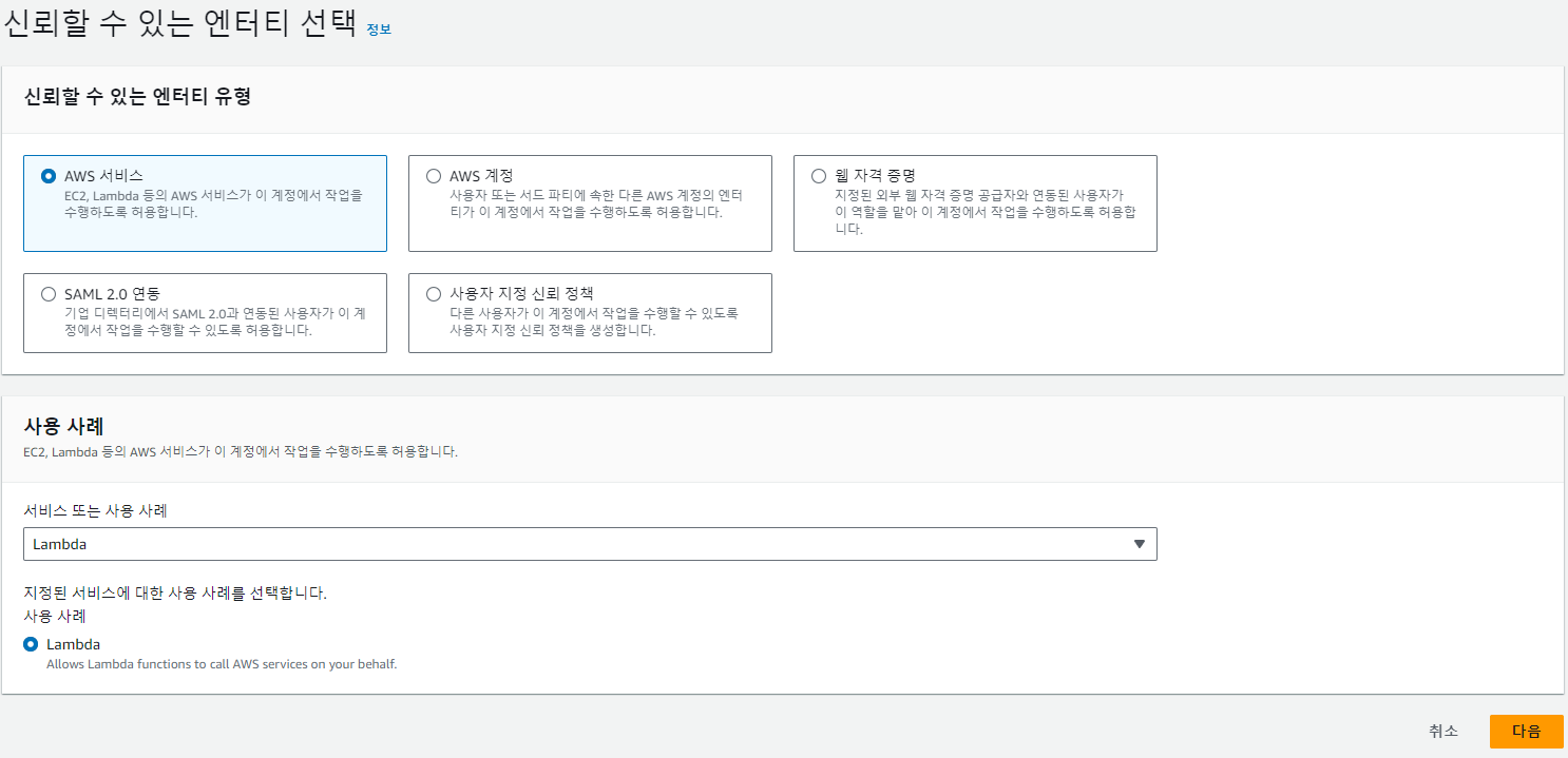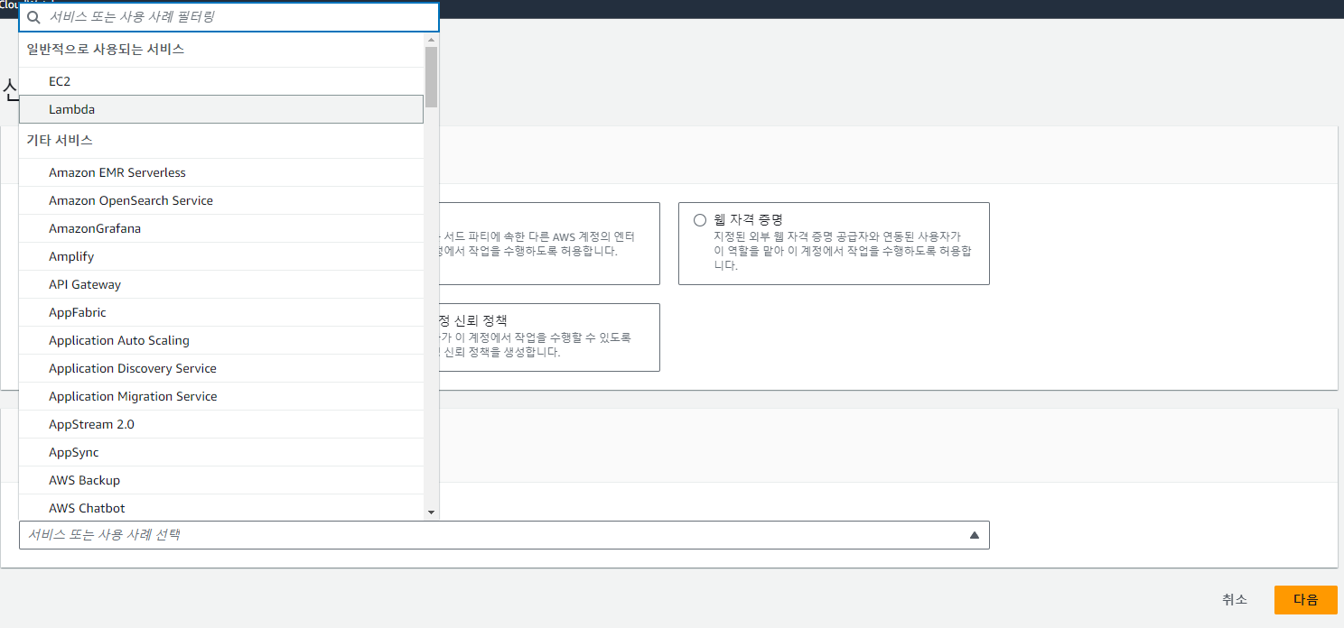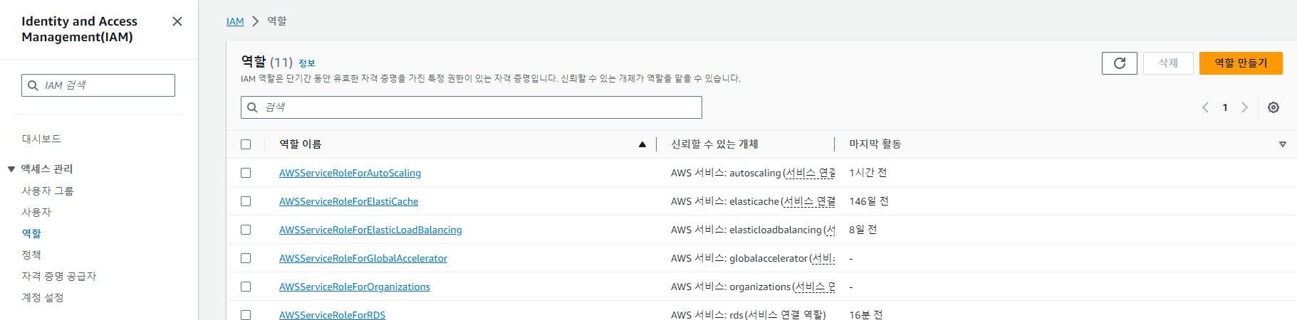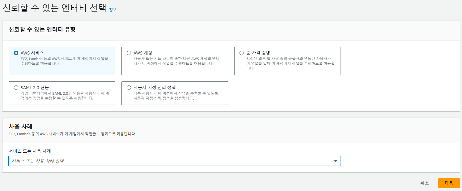 IAM > 엑세스 관리 > 역할 > 역할 만들기