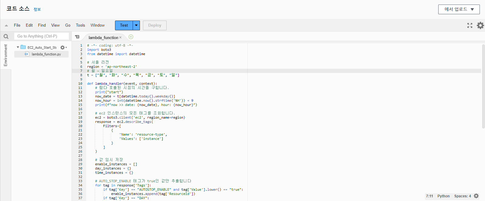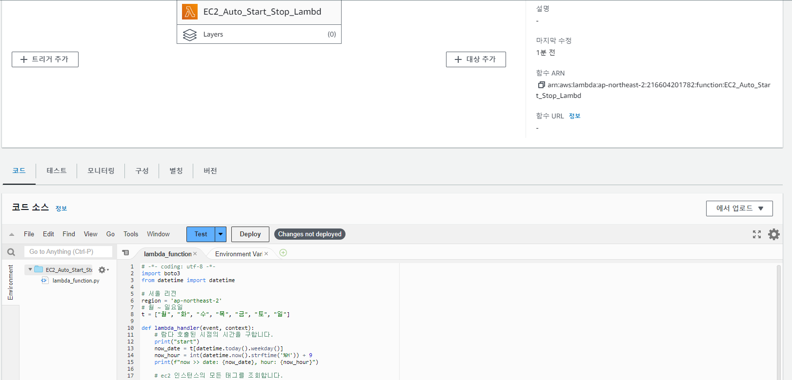 함수 이름 : EC2_Auto_Start_Stop_Lambda