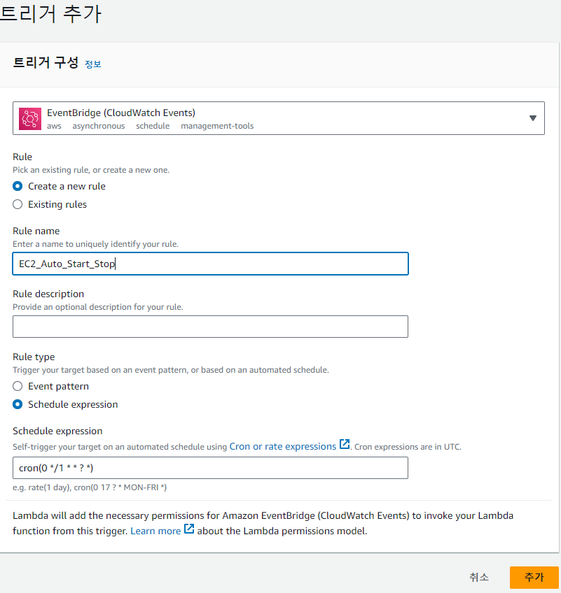 룰 이름 : EC2_Auto_Start_Stop