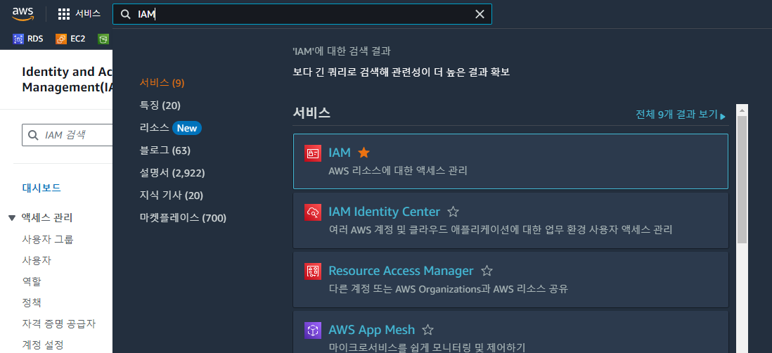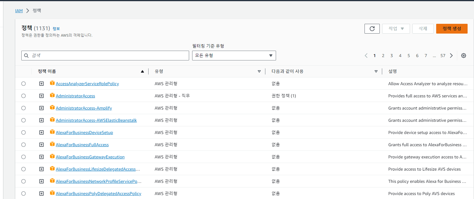 IAM 검색 > 액세스 관리 > 정책