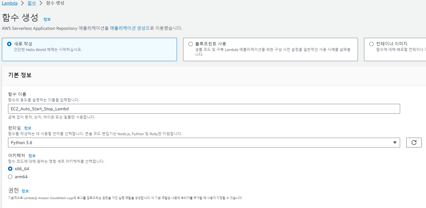 EC2_Auto_Start_Stop_Role 선택 > 함수 생성