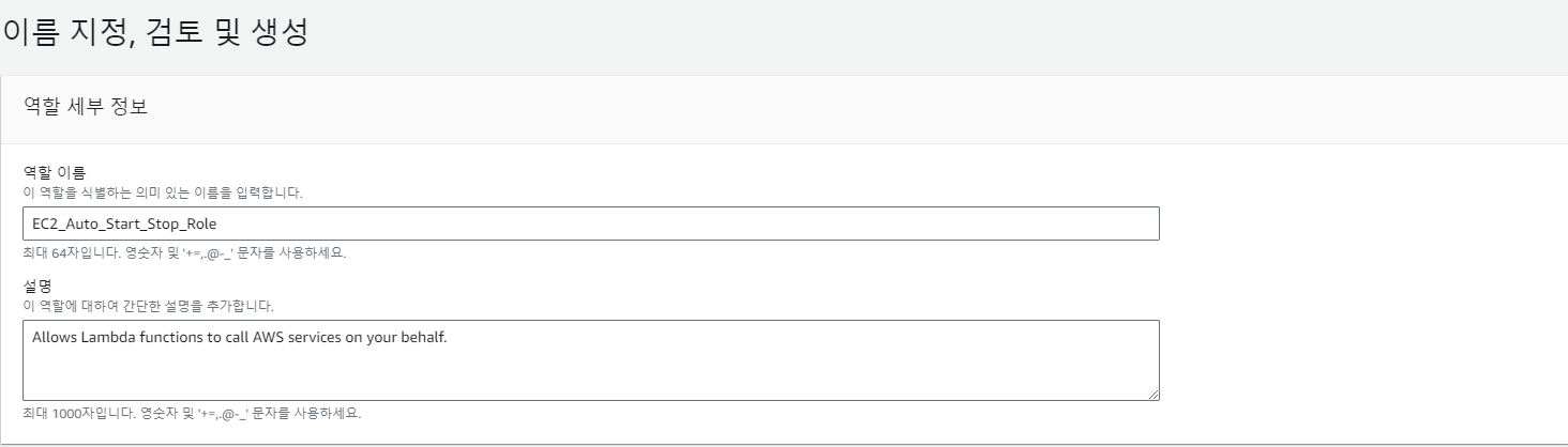 역할 이름 : EC2_Auto_Start_Stop_Role > 역할 생성