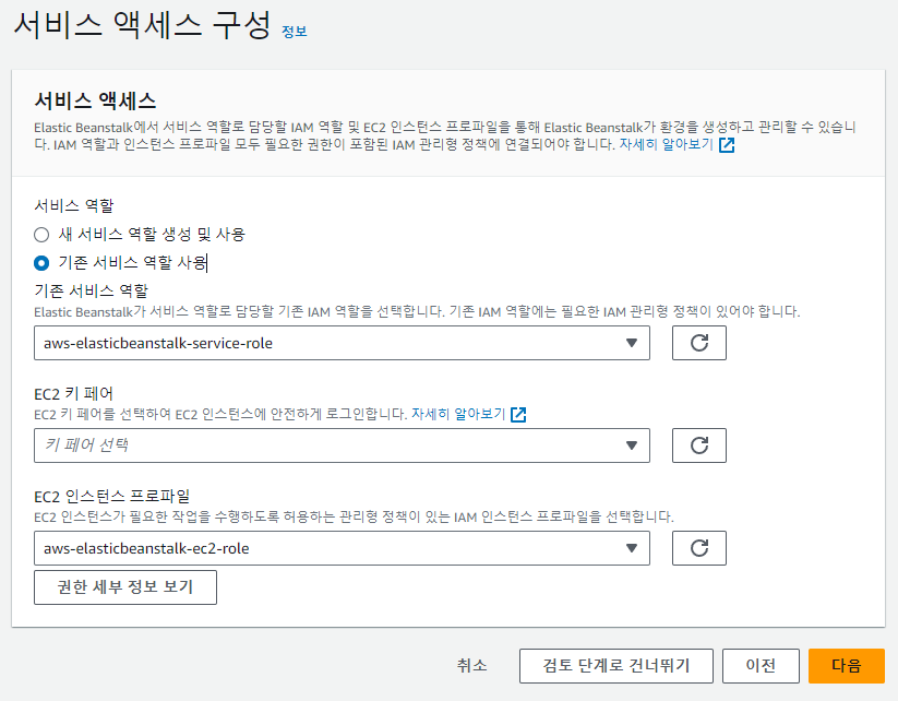 Elastic Beanstalk을 위한 IAM 정책 및 역할 생성