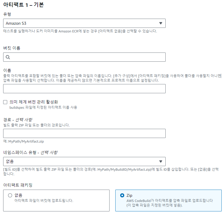 - 아티팩트 패키징에서 Zip 설정합니다.