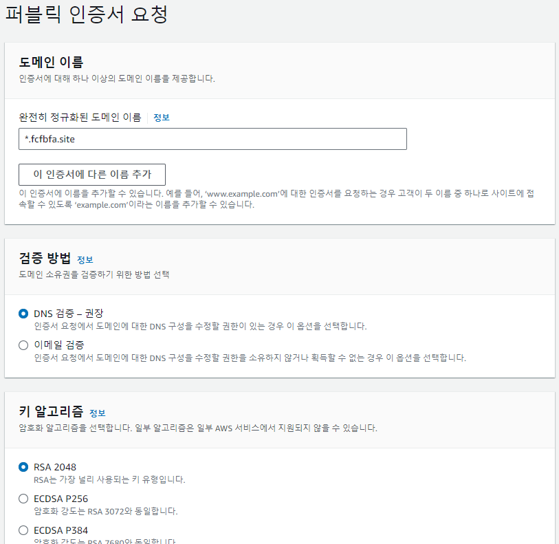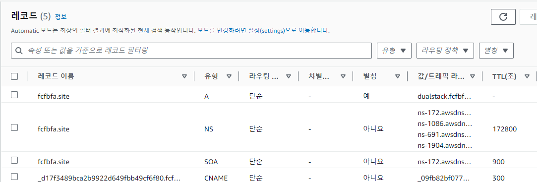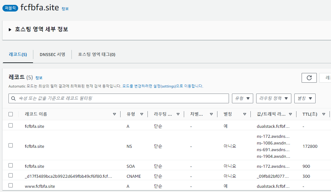 - Route 53을 사용 중이라면 AWS가 자동으로 필요한 DNS 레코드를 생성해줍니다.